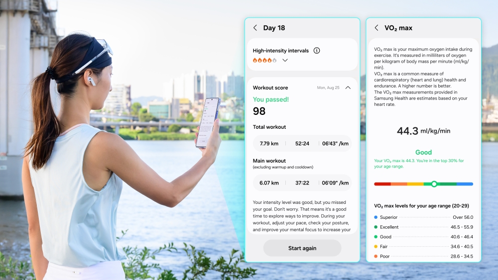 Running Coach is more than an app that tracks distance and time. Powered by the Galaxy Watch8 series’ advanced sensors, the feature delivers real-time data in an intuitive way — helping runners understand their pace and fitness level as they train.