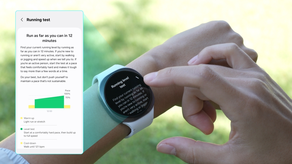 The method is simple — enter previous running experience into the Galaxy Watch8 series, then run as far as possible in 12 minutes. Beginners can start with walking or light jogging, gradually picking up the pace as guided by the watch. For the most accurate results, complete the test on a flat course and avoid overexertion the day before.